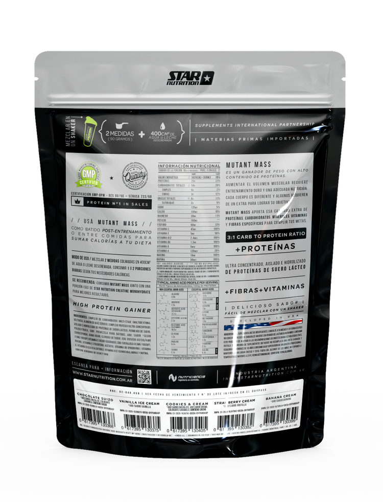 Se recomienda: Consumir MUTANT MASS junto con una porción (5G) de Star Nutrition CREATINE MONOHYDRATE para mejores resultados.