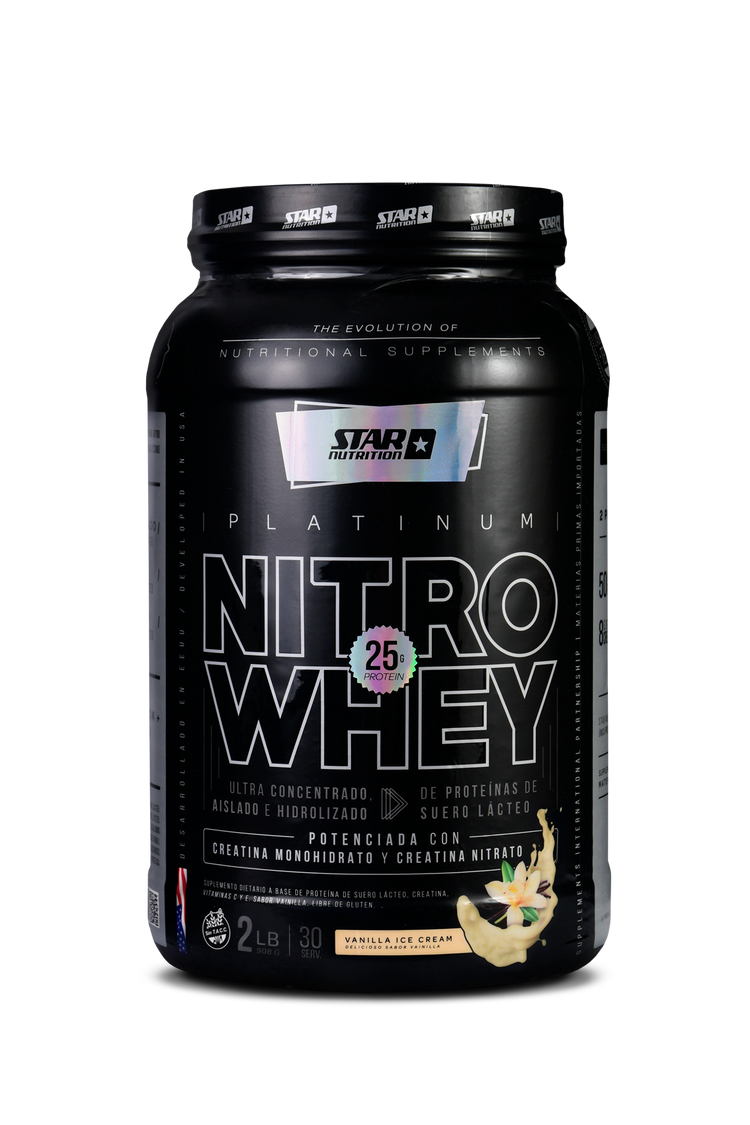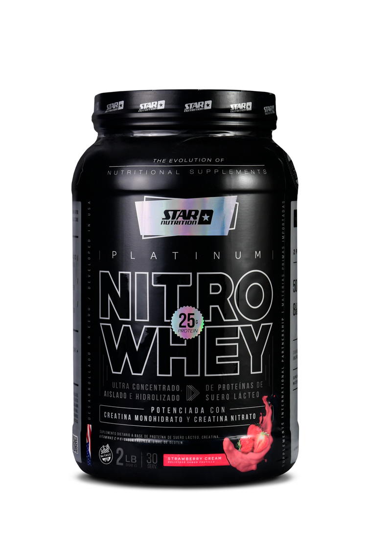 STAR NUTRITION NITRO WHEY está potenciado además con Creatina Monohidrato, Beta Alanina, Aminoácidos de cadena ramificada y enzimas digestivas, además de un exclusivo probiótico. Todo esto la convierte en la Proteína más completa.
